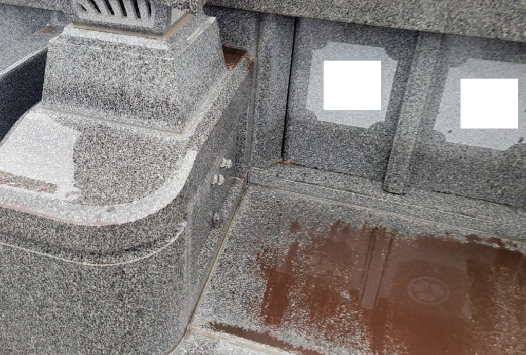 お墓の状態や石材に応じて高圧洗浄機、手作業などを使い分け、さらには薬剤などもせんていしたうえで作業を行います。実際に作業に取り掛かるとどす黒いヨゴレがドンドンでてきます。これを放置するとお墓の傷みの原因となります。墓石クリーニング作業事例