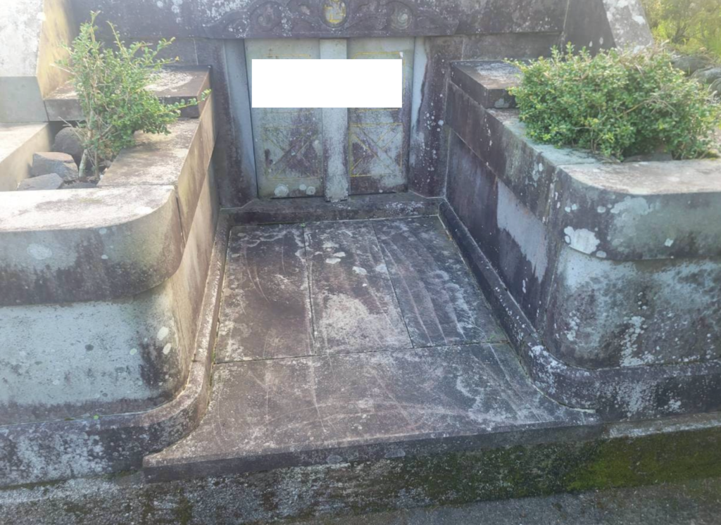 長年放置されていたことで、ヨゴレが蓄積されており、石本来の色などがすべてかれているほどの墓石でしたが、作業後は本来の白く輝いた色に戻ることができました。作業事例②