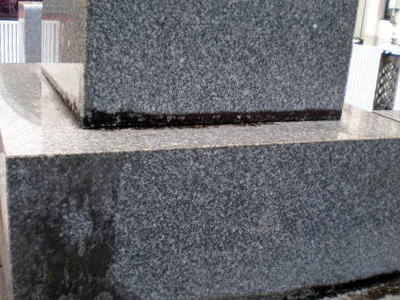 お墓の状態や石材に応じて高圧洗浄機、手作業などを使い分け、さらには薬剤などもせんていしたうえで作業を行います。実際に作業に取り掛かるとどす黒いヨゴレがドンドンでてきます。これを放置するとお墓の傷みの原因となります。墓石クリーニング作業事例