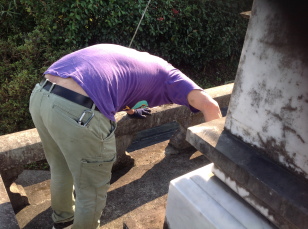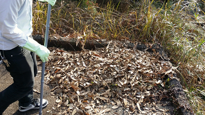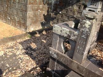一年間にわたりたまっていた枯葉が大量に墓周りに存在したため、すべて掃きとり、その後しっかりと表面をからぶきして、最後に線香を立てお参りをさせていただきました。