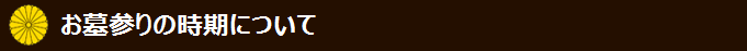 ■命日のお墓参り ・故人が亡くなった日を命日と言います。 また、一周忌以降は、亡くなった日と同月同日を「祥月命日(しょうつきめいにち)」と呼び、毎月の同日を「月命日(つきめいにち)」と言います。 ・祥月命日には、法事・法要が営まれるほか、お墓参りをすることが多いようです。月命日には、自宅で供養をしても良いでしょう。 |