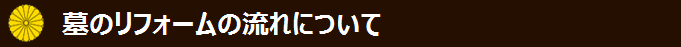 お墓は長い年月の間に古くなったり、シミになったり、欠けてしまったりするものです。お墓のリフォームとは、その名の通り、お墓を「リフォーム」し、美しく蘇らせることです。先祖代々受け継がれたものは残しながら、お墓を見違えるように生まれ変えます。最近ではお墓のリフォームをする方が増えています。お墓そのものを別の場所に移動したりするケースもあります。お客様のニーズに合わせてお墓をリフォームさせていただきます。